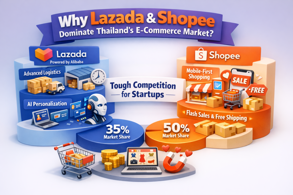 E-commerce startups in Thailand competing with Lazada & Shopee face one of the toughest challenges in Southeast Asia’s digital economy. Lazada and Shopee dominate with massive budgets, logistics networks, and customer loyalty programs.