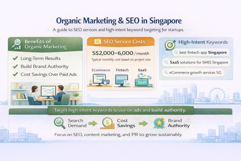 Search demand is strong in industries like Singapore eCommerce SEO, fintech SEO, and SaaS marketing Singapore, where startups compete for high-intent keywords like: