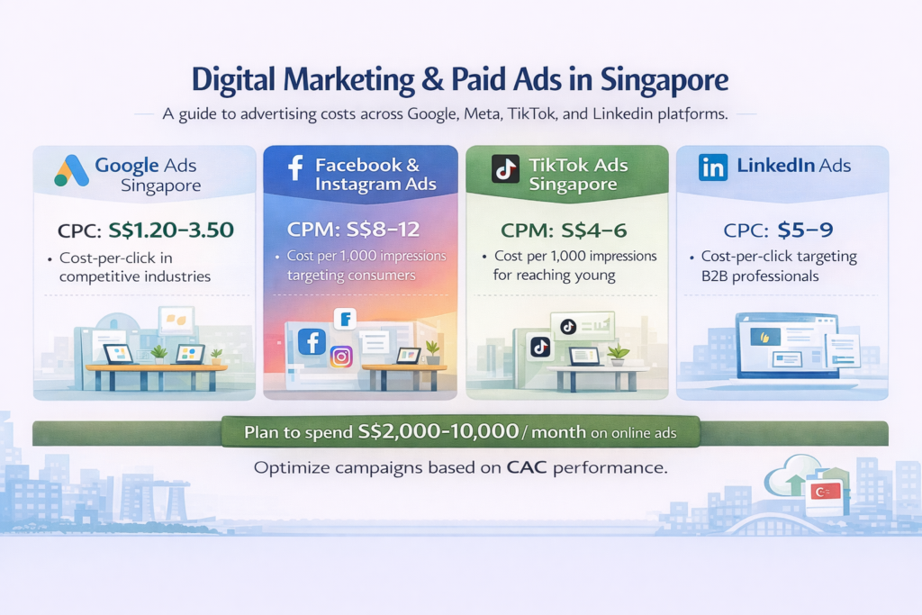 Facebook & Instagram Ads: CPM averages S$8–12, with strong performance in fashion, retail, and travel startups.