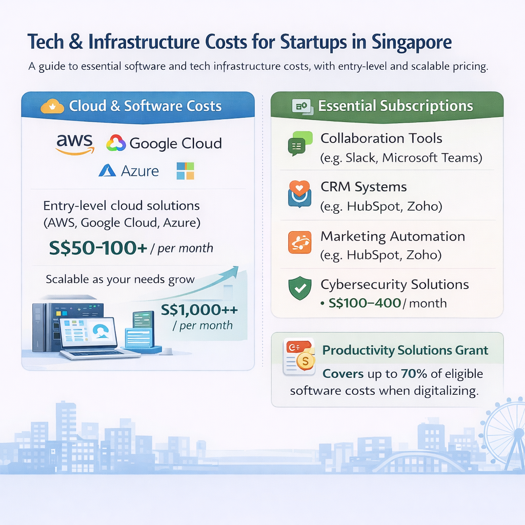 When combined, a lean early-stage startup may spend S$500–1,000/month on core digital infrastructure. Scaling companies should budget S$3,000–5,000/month by Series A.