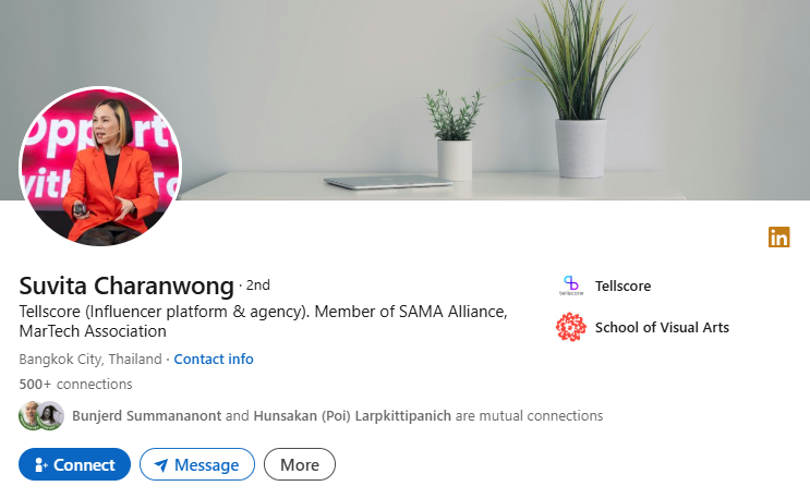 Suvita Charanwong leads Tellscore, Southeast Asia’s top influencer-marketing automation platform. Under her leadership, Tellscore has scaled rapidly, bridging brands with creators through AI-powered workflows and data-driven campaign tools.
